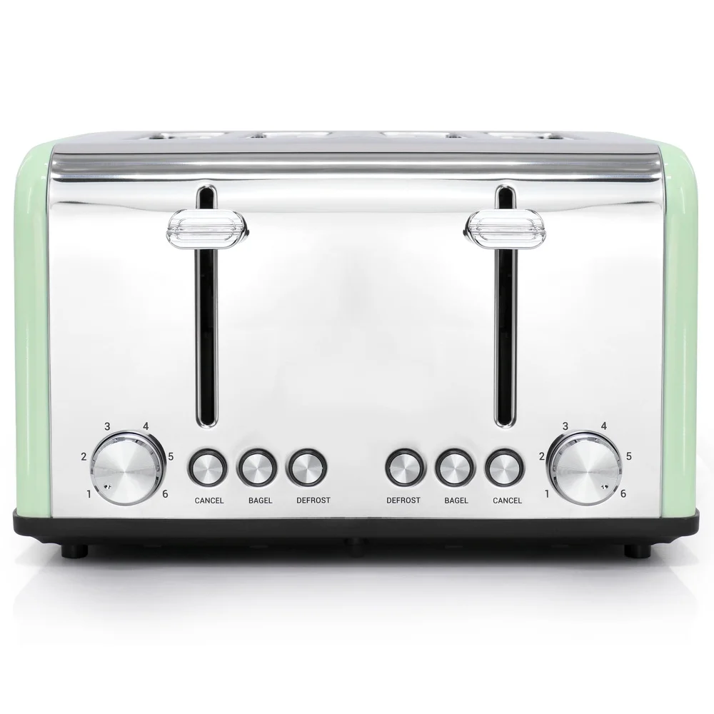 Upgrade your kitchen with this 4-slice wide slot stainless steel toaster. With 7 adjustable heat settings, you can toast bread to your preferred level of crispiness. The toaster features defrost, reheat, and cancel functions for added convenience. Extra-wide slots accommodate thick slices, bagels, and artisan bread. A removable crumb tray makes cleaning quick and effortless. 1650W power ensures fast and consistent toasting every time. Durable stainless steel construction provides long-lasting use. Sleek design adds a modern touch to any kitchen countertop. Simple controls make it easy to use for the entire family. Enjoy perfectly toasted results and versatile functionality with this high-performance toaster.