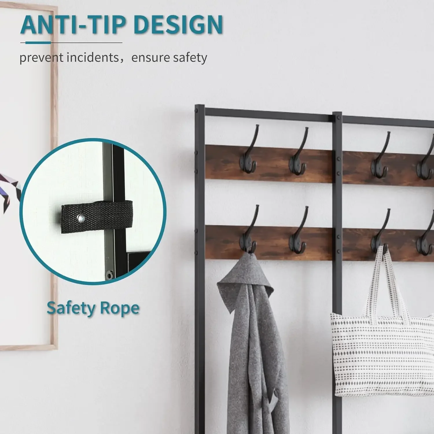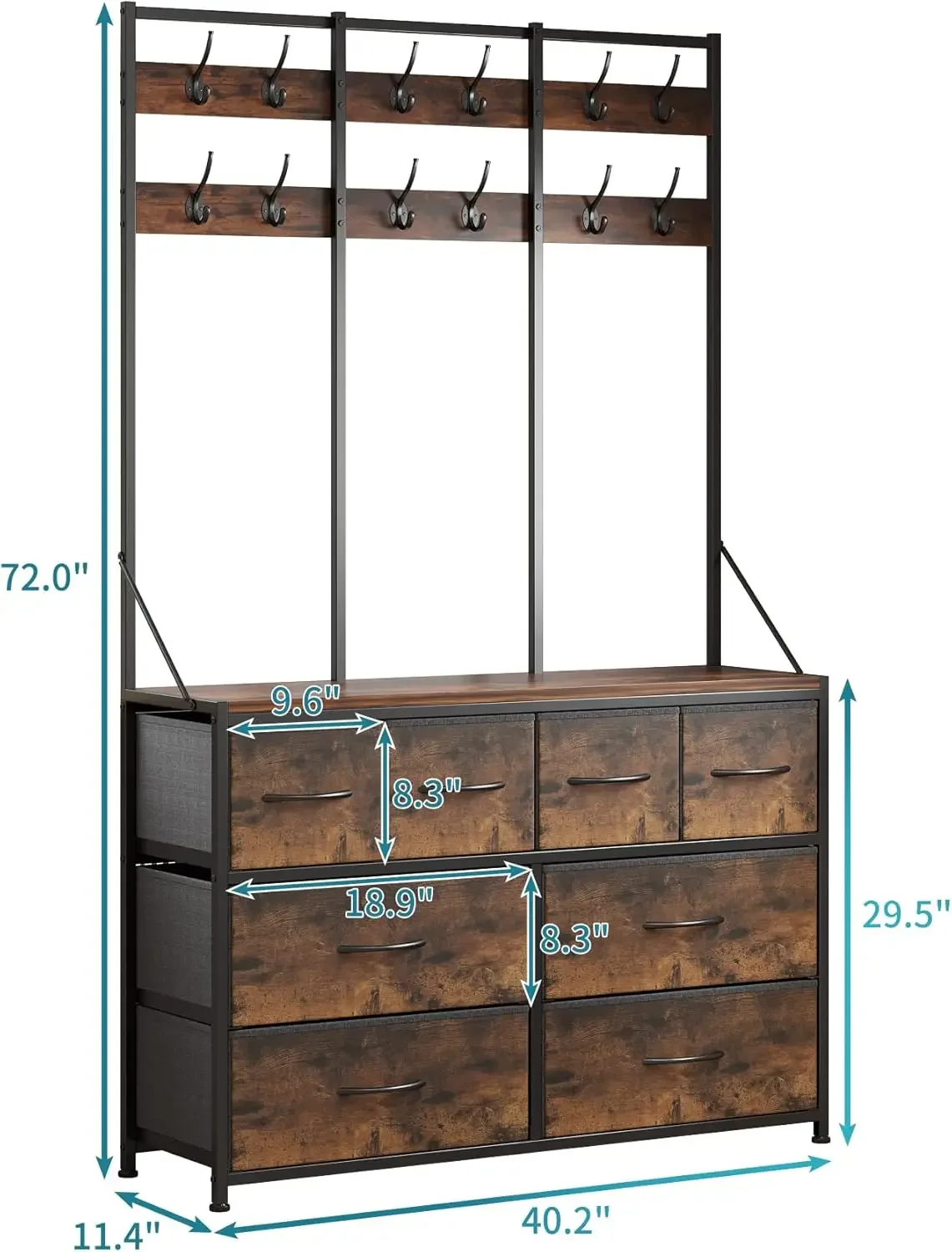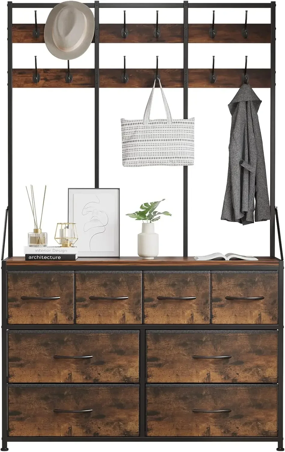 Stay organized with this multifunctional 8-drawer dresser and clothes rack combination. Featuring spacious fabric drawers, it provides ample storage for clothing, toys, or household essentials. The sturdy frame ensures durability and stability for daily use. A built-in hall tree with hooks offers a convenient place to hang coats, hats, or bags. Compact and versatile, this dresser is perfect for bedrooms, entryways, or living rooms. Smooth drawer handles make it easy to access and organize your belongings. The modern design blends seamlessly with a variety of home décor styles. Lightweight yet durable, it’s easy to move and reposition as needed. Quick to assemble, it provides practical storage without hassle. Functional, stylish, and space-saving, this dresser is a must-have for keeping your home neat and organized.