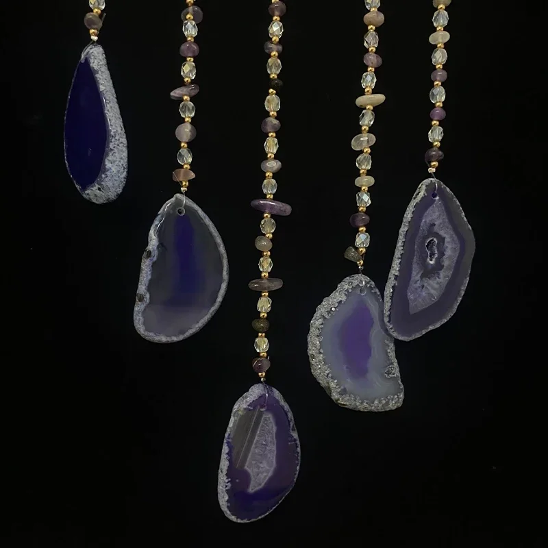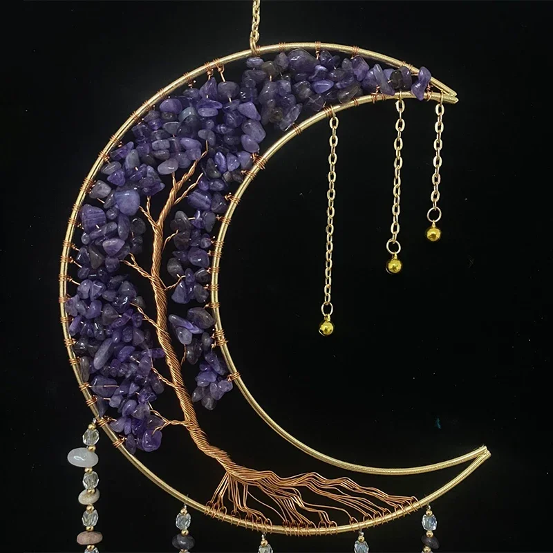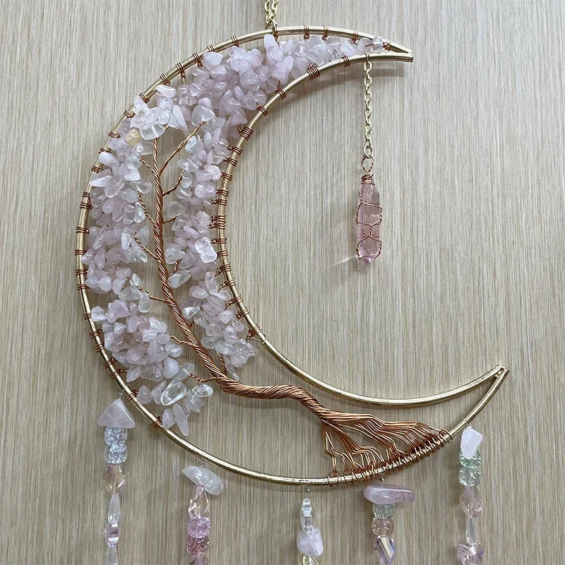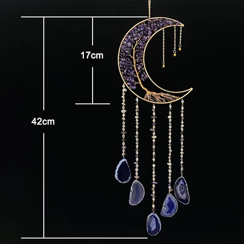 Bring spiritual beauty and calming energy into your space with this natural agate chakra dream catcher. The design features colorful 7 chakra gemstones combined with a moon-inspired decorative style. Natural agate stones add a unique and elegant touch to the hanging décor. The dream catcher symbolizes protection and positive energy. It is perfect for living rooms, bedrooms, meditation spaces, and garden areas. The soft hanging elements create gentle movement and soothing visual appeal. Crafted with natural materials, each piece offers unique color variations. The bohemian style blends beautifully with modern and spiritual décor themes. It is lightweight and easy to hang on walls, windows, or outdoor spaces. This decorative piece also makes a meaningful and thoughtful gift for loved ones.