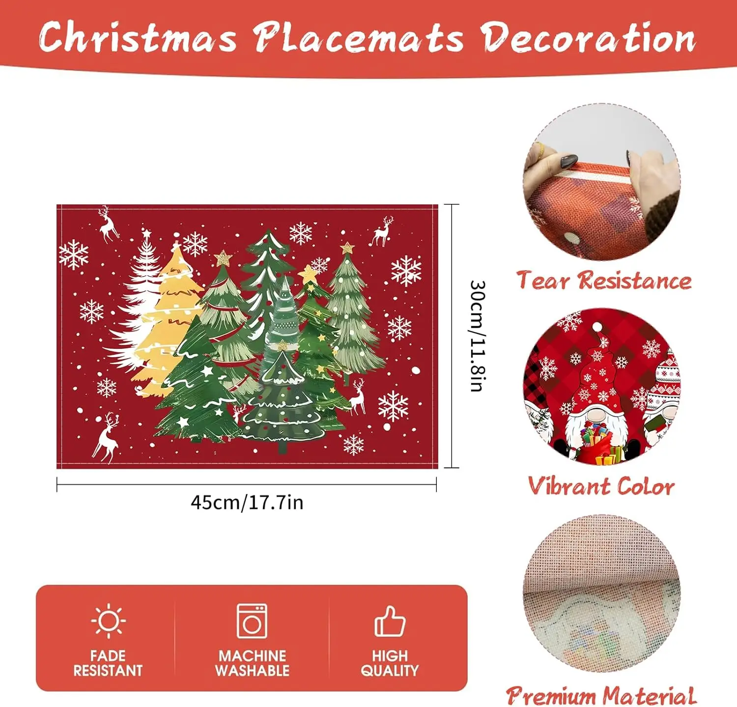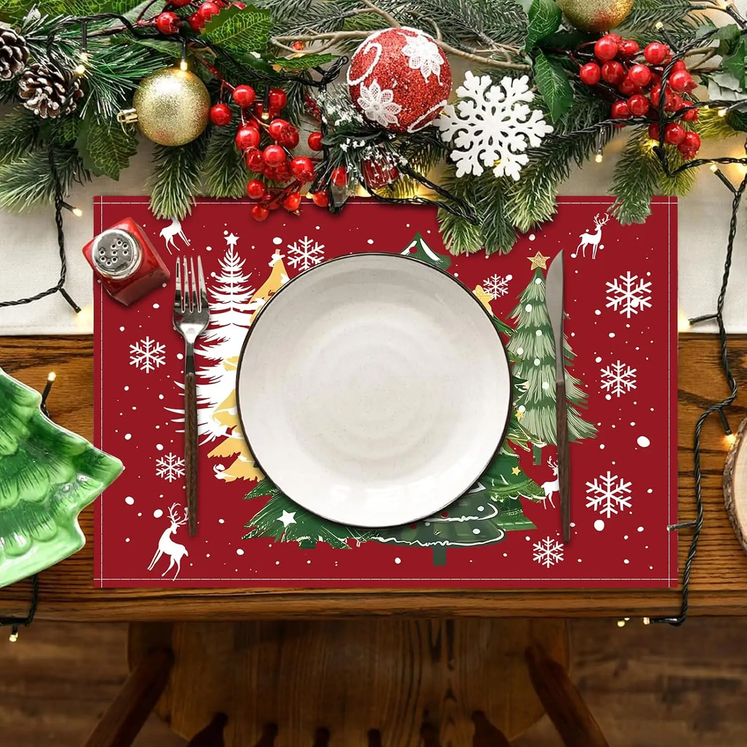 Celebrate the holiday season with these Christmas Placemats (12×18 Inch) featuring festive Xmas tree and snowflake designs. Perfect for decorating your kitchen, dining table, or holiday party setup, these mats add a cheerful touch to your home décor while protecting your surfaces. Made from durable, easy-to-clean material, they are both practical and decorative, ideal for everyday holiday meals or special gatherings.