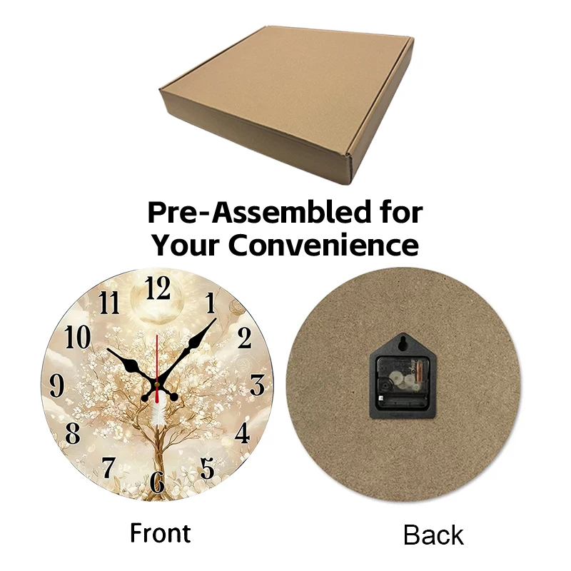 Bring a touch of natural elegance to your space with the Ethereal Floral Tree Wooden Round Silent Wall Clock. Crafted from high-quality wood, this non-ticking clock runs quietly, making it ideal for bedrooms, study rooms, and offices where peace is key. The delicate floral tree design adds a calming, artistic vibe to your décor, while the easy-to-read numbers ensure practicality. Perfect as a centerpiece for living rooms or as a thoughtful housewarming gift, this decorative wall clock combines functionality with aesthetic charm.