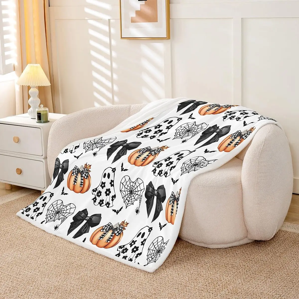 Bring a playful spooky vibe to your home with this Happy Halloween plush blanket. The cute cartoon design features ghosts, spider webs, and other festive Halloween motifs. Made from soft, plush material, it provides warmth and comfort for chilly autumn nights. Lightweight yet cozy, it’s perfect for snuggling on the couch or layering on your bed. The blanket’s smooth texture is gentle on the skin, suitable for kids and adults alike. Machine washable and easy to maintain, it keeps its softness and vibrant colors after multiple washes. Its versatile design works as a decorative throw or practical blanket for everyday use. Neatly stitched edges ensure durability and a polished look. Ideal as a seasonal accent for your living room, bedroom, or reading nook. Makes a fun and thoughtful Halloween gift for friends, family, or colleagues.