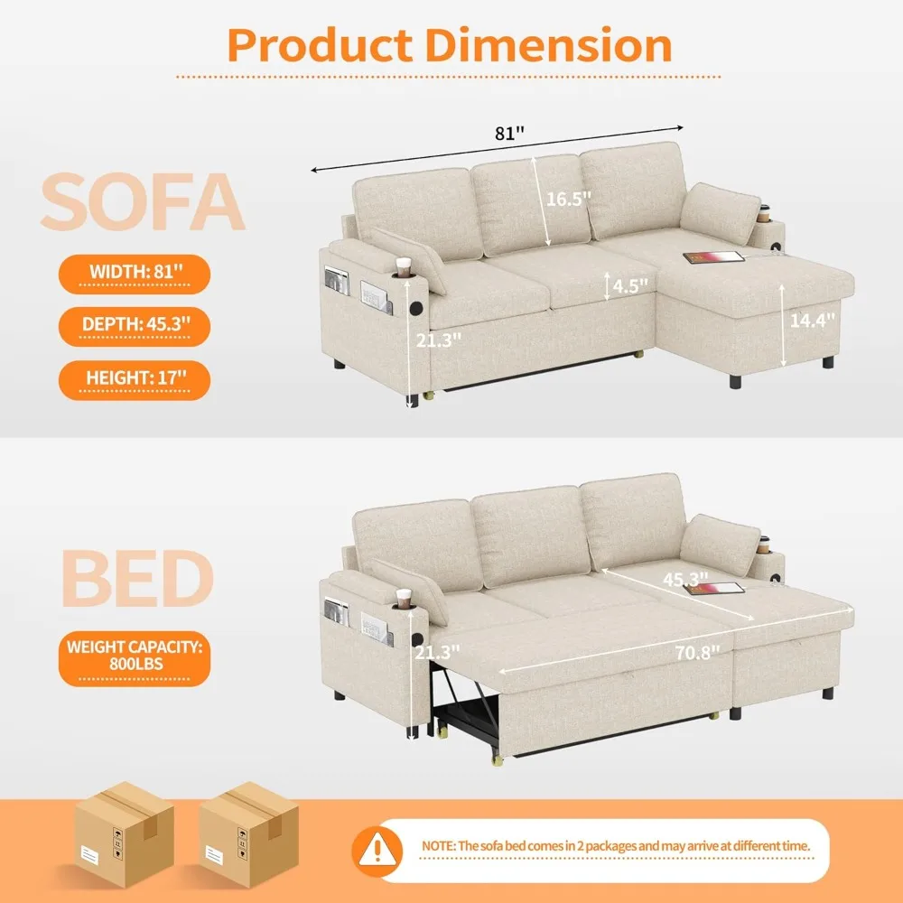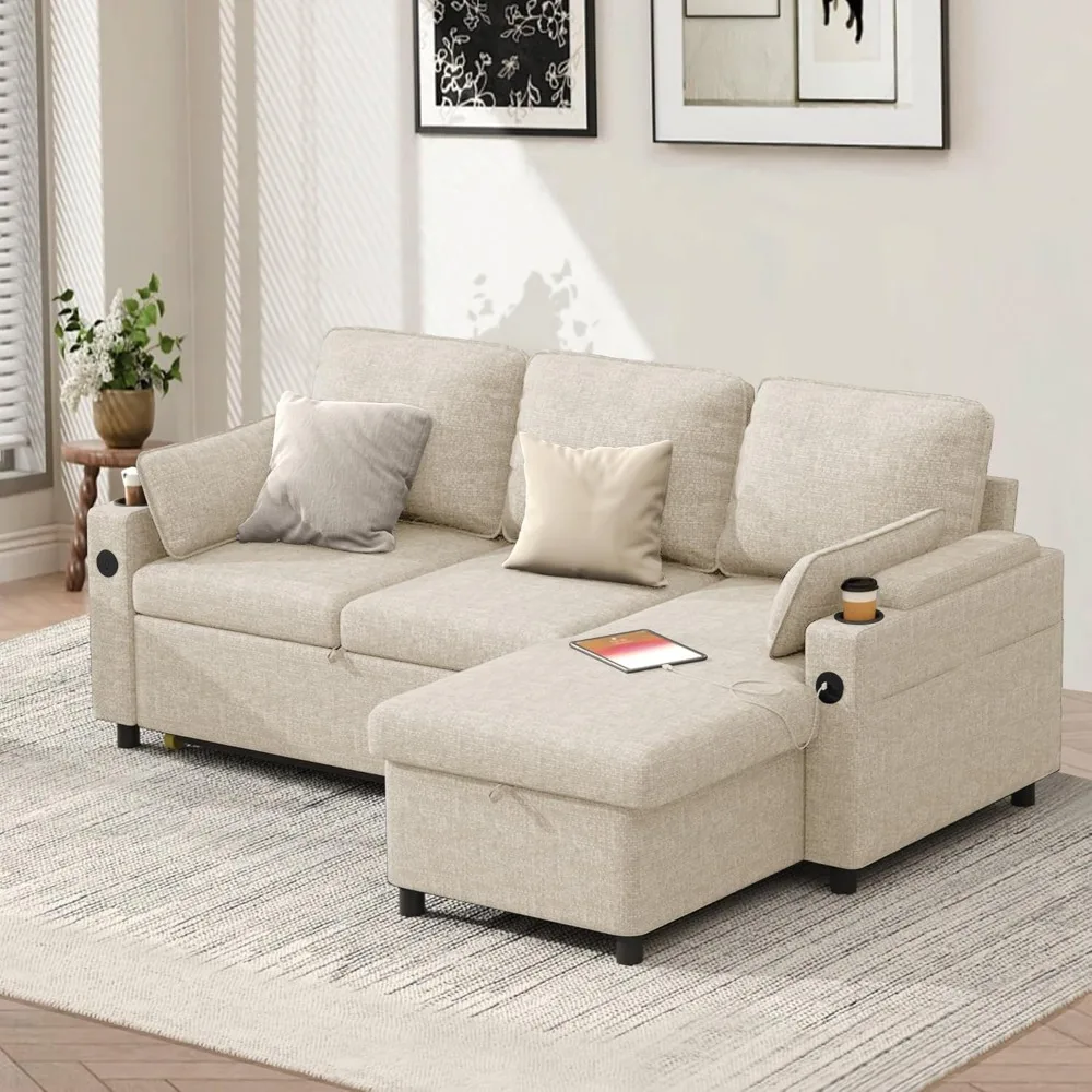 Maximize comfort and space with this 2-in-1 L-shaped sleeper sofa designed for modern living. The pull-out convertible bed provides a convenient solution for overnight guests. Built-in storage helps you organize blankets, pillows, and living room essentials. Perfect for small apartments and compact living rooms, it saves space while adding functionality. The sectional design offers flexible seating arrangements and a cozy lounging area. Soft cushions and supportive seating ensure lasting comfort for everyday use. Its sleek, contemporary style enhances any décor with a modern touch. Sturdy construction provides durability and stability over time. Easy to assemble and maintain, making it practical for busy households. This multifunctional sleeper sofa combines comfort, storage, and style in one smart design.