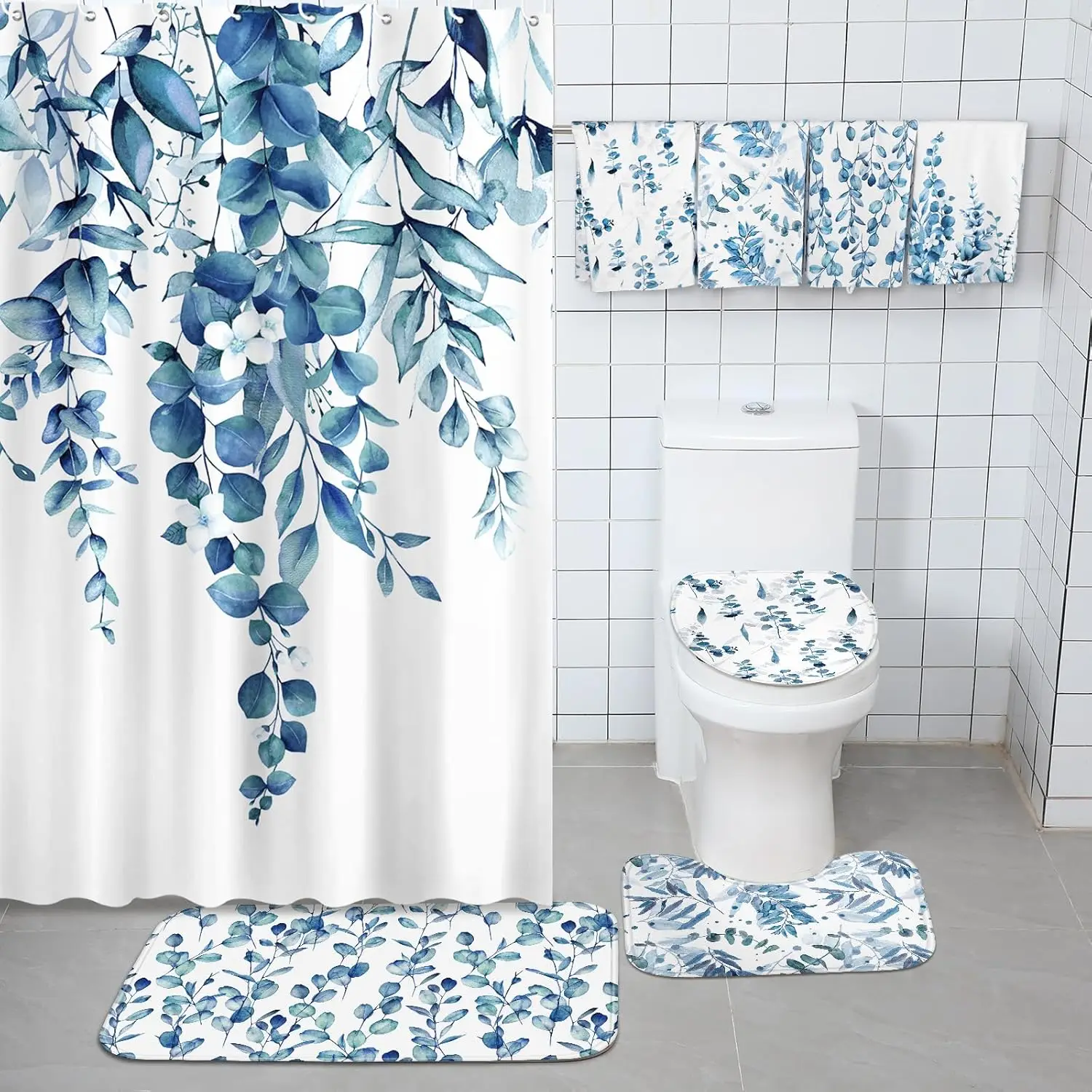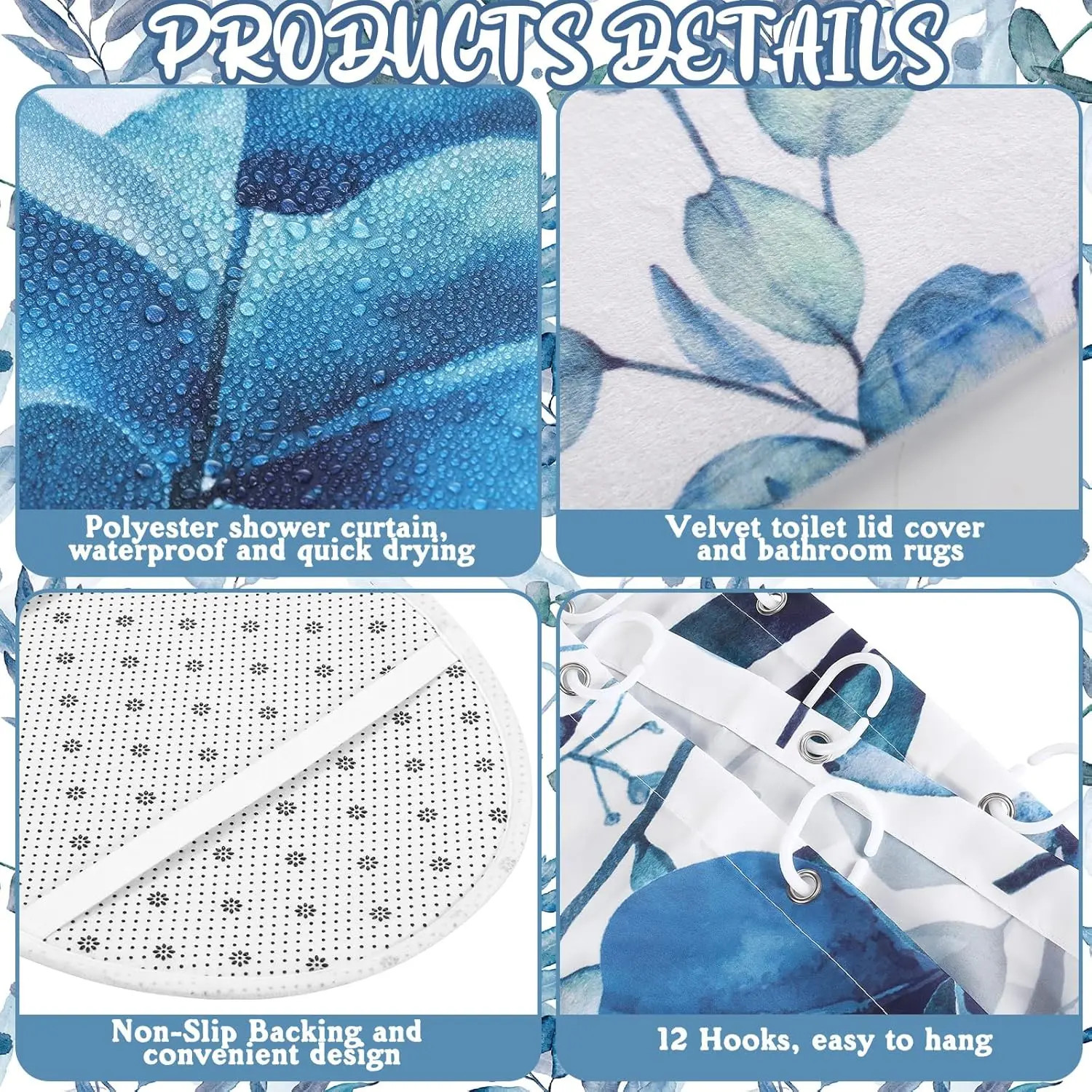 Bring a fresh, natural look to your bathroom with this 4-piece leaves bathroom set. The set includes a waterproof shower curtain with 12 hooks, a non-slip bath mat, a toilet lid cover, and a matching bath rug. Made with durable, high-quality materials, the shower curtain keeps water contained while protecting your floors. The non-slip mats provide safety and comfort underfoot. Featuring a stylish leaves design, this set adds a modern, nature-inspired touch to any bathroom. Easy to install and fits most standard tubs and toilets. Machine washable for simple maintenance and long-lasting use. Perfect for home bathrooms, guest bathrooms, or apartments. Soft yet durable, ideal for daily use. Upgrade your bathroom décor with this functional and coordinated 4-piece set.