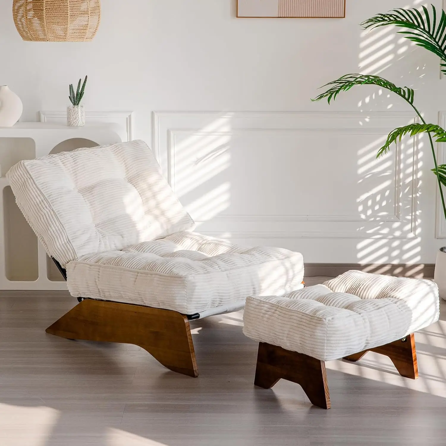 This accent ottoman lounge chair set combines modern design with comfort and versatility. Featuring a tufted backrest with adjustable positions, it allows you to relax exactly how you like. Upholstered in soft, durable fabric, the chair adds both style and comfort to your living room. The included footrest ottoman enhances relaxation, providing full support for your legs and feet. Its sleek silhouette makes it a perfect fit for modern, contemporary, or minimalist interiors. Built with sturdy materials, it ensures lasting durability and stability. Ideal for use in living rooms, bedrooms, or reading nooks. The plush cushioning creates a cozy spot for lounging, reading, or watching TV. Easy to maintain and designed for everyday comfort. A stylish and functional furniture piece that elevates your home décor.