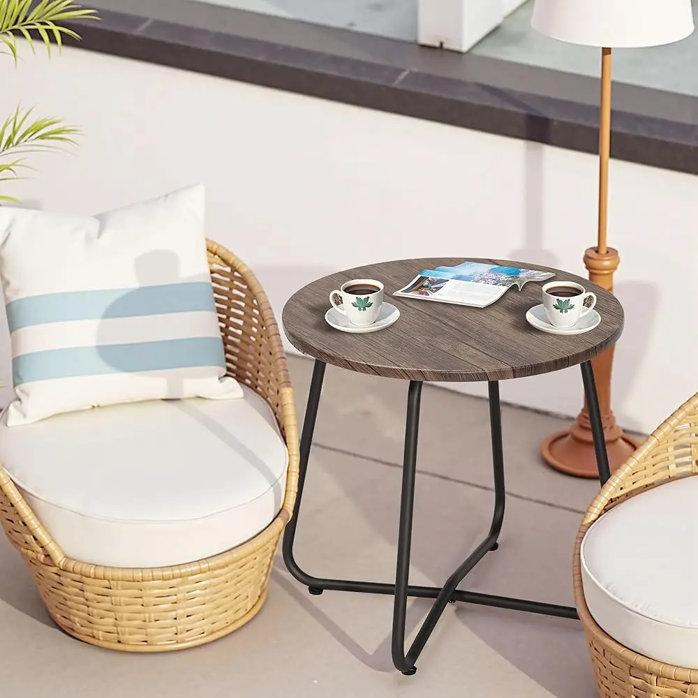 Enhance your outdoor or indoor space with this small round metal side table. Designed with an anti-rust finish, it withstands the elements for long-lasting durability. Perfect for patios, gardens, balconies, or yards, it also works well in living rooms or bedrooms. The compact round design provides a convenient spot for coffee, drinks, or décor. Lightweight yet sturdy, it’s easy to move and reposition as needed. Its sleek, minimalist style complements a variety of décor themes. Ideal for both functional use and decorative purposes. Easy to clean and maintain, ensuring practical everyday use. The stable construction supports beverages, plants, or small accessories securely. Stylish, versatile, and durable, this side table is a perfect addition to any space.