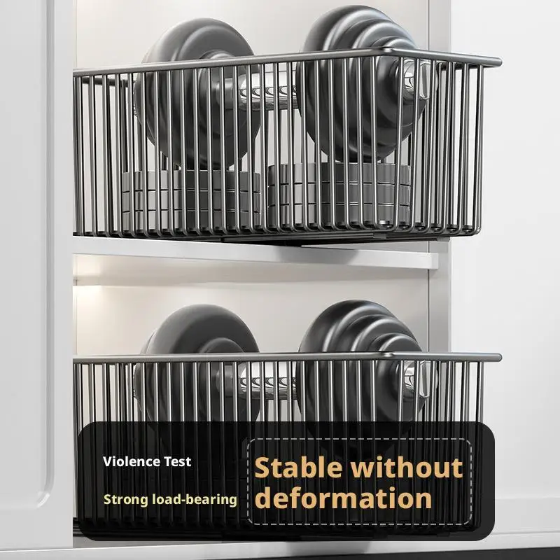This pull-out cabinet organizer makes it easy to access items stored under the sink or inside cupboards. It features a smooth sliding drawer design that lets you reach supplies without digging. The sturdy metal construction ensures durability and long-term use. Its open basket layout provides good ventilation and prevents moisture buildup. Perfect for storing cleaning products, kitchen tools, or pantry items. The compact design fits well in bathrooms, kitchens, or utility spaces. It helps maximize cabinet space and reduce clutter. Installation is simple and requires minimal effort. The sleek and practical design blends well with any home style. Keep your cabinets neat and organized with this sliding storage drawer.
