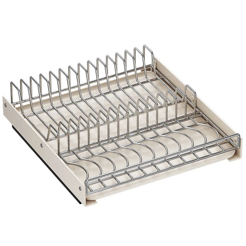 Maximize your kitchen space with this Pull-Out Dish Rack, crafted from durable stainless steel for long-lasting use. Designed for under-sink or cabinet storage, this drawer-type rack efficiently organizes bowls, plates, and other kitchen essentials while keeping your countertops clutter-free. Its sliding pull-out design makes accessing dishes easy and convenient, while the stainless steel construction ensures water drainage and prevents rust. Perfect for modern kitchens seeking both functionality and style.