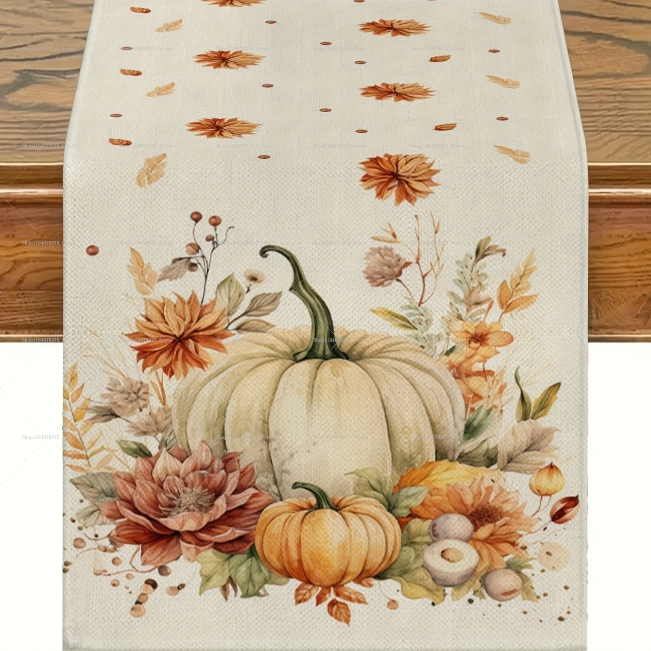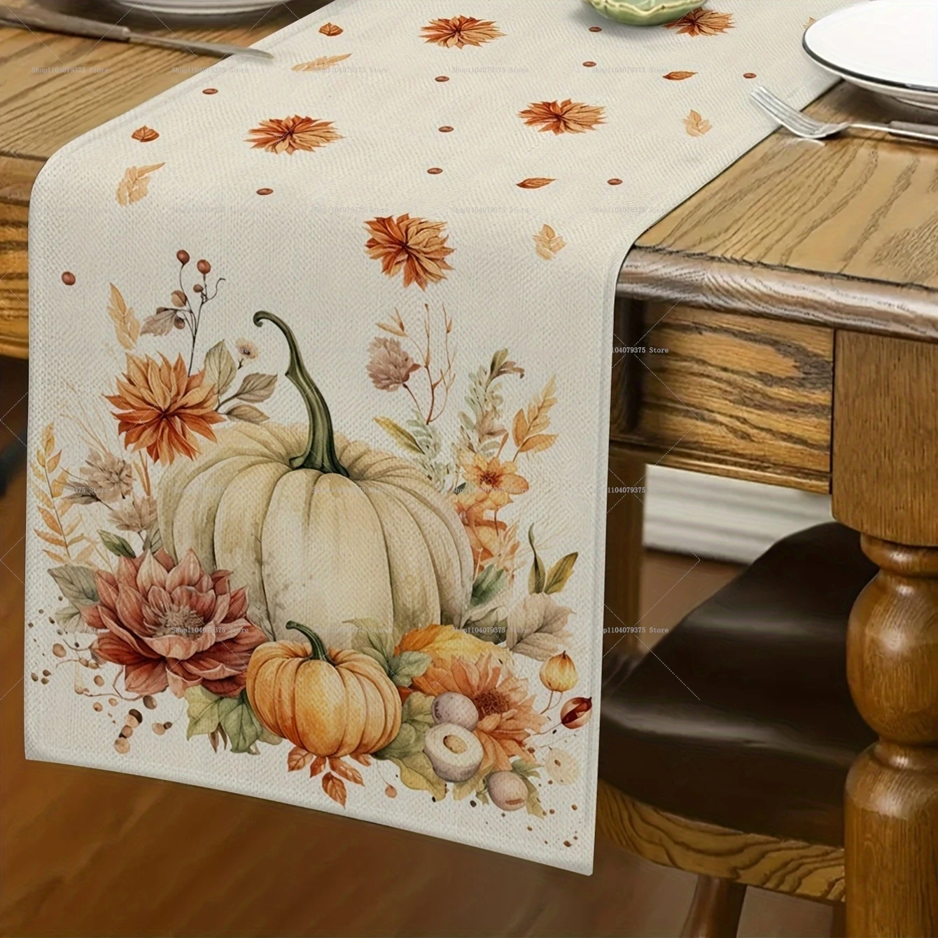 This pumpkin and green leaves table runner adds a warm seasonal touch to any dining space. The festive design is perfect for celebrating fall gatherings and holidays. Its rectangular shape fits most tables, offering a clean and elegant look. The vibrant pumpkin pattern pairs beautifully with autumn-themed décor. Made from durable fabric, it holds up well to everyday use. It’s easy to spread across dining tables, kitchen counters, or sideboards. The runner helps protect your table surface while enhancing its appearance. Lightweight and easy to fold, it stores neatly when not in use. Suitable for family dinners, restaurant setups, or holiday parties. This table runner brings a cozy and festive charm to your fall decorating.