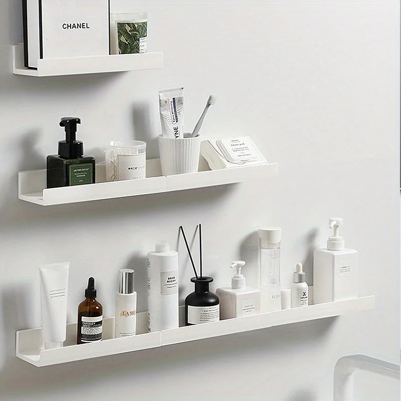 This self-adhesive bathroom shelf provides convenient storage for toiletries and makeup. Its no-drill design allows for easy installation on tile, glass, or smooth surfaces. The sturdy metal rack holds shampoo, conditioner, soaps, and other essentials securely. Perfect for showers, sinks, or vanity areas, it keeps items organized and accessible. The sleek design complements modern bathroom décor. Its compact size saves space while maximizing storage efficiency. Easy to clean and maintain, it’s ideal for daily use. The shelf supports both small and medium-sized bottles and containers. Installation requires no tools, making it simple and mess-free. Keep your bathroom neat and clutter-free with this practical wall-mounted shelf.