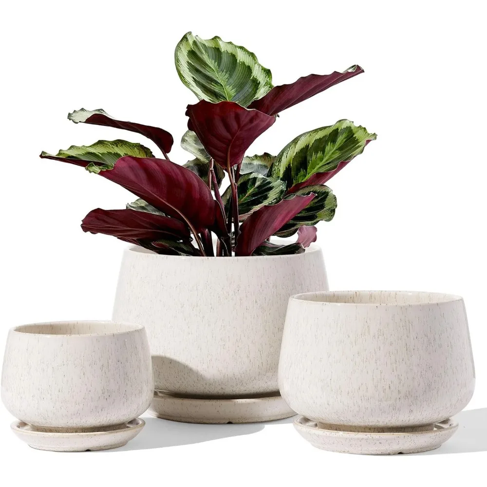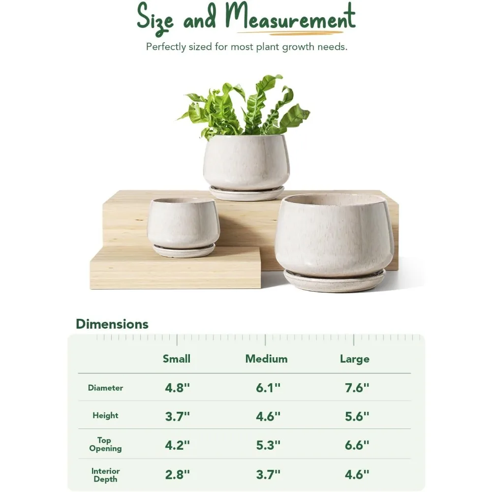 Elevate your plant display with this 3-piece ceramic planter set, featuring sizes 4.1″, 5.1″, and 6.5″. Each pot includes a drainage hole, saucer, and mesh pad to promote healthy root growth while preventing overwatering. Perfect for succulents, flowers, herbs, or small houseplants, these planters combine functionality with a sleek, modern design that complements any home décor.