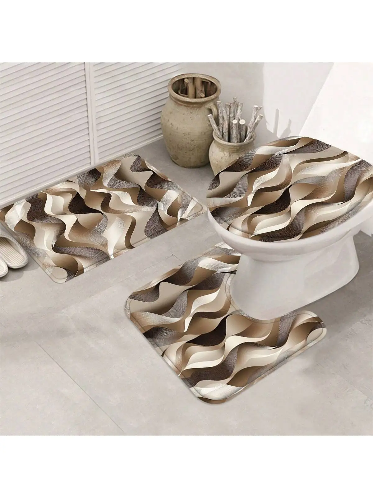 Refresh your bathroom with this stylish 4-piece striped bathroom décor set. The set includes a twisted striped shower curtain, a layered striped shower curtain, and a soft bath mat. Featuring an abstract art-inspired design, this set brings a modern and colorful touch to your space. The shower curtains are made of waterproof, durable fabric that dries quickly. The bath mat is non-slip and absorbent for safe and comfortable use. Perfect for upgrading your bathroom’s look with minimal effort. Easy to install with included hooks and machine washable for convenience. Fits most standard tubs and showers. Ideal for adding a fresh, vibrant look to guest bathrooms, dorms, or master bathrooms. A thoughtful housewarming gift for anyone who loves contemporary home décor.