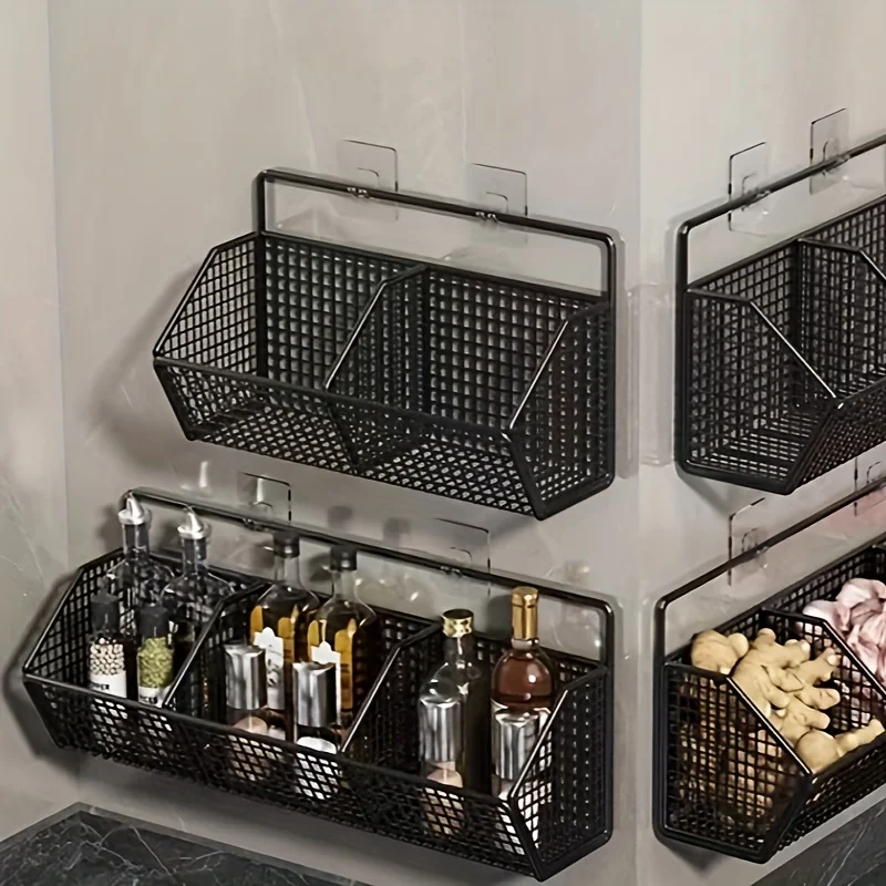 Maximize your kitchen space with this wall-mounted metal wire storage basket. Perfect for holding spices, garlic, onions, vegetables, or other kitchen essentials, this durable and rust-resistant basket keeps everything within easy reach. Its open design allows for proper air circulation, keeping produce fresh while adding a sleek, organized look to your kitchen.